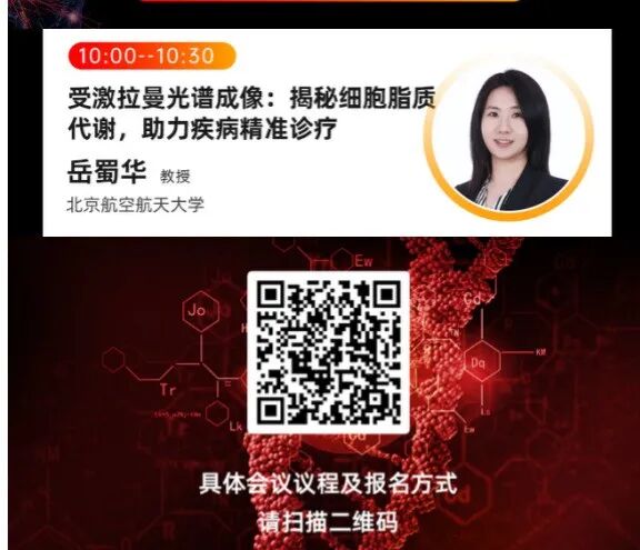 本次研讨会特邀北京航空航天大学岳蜀华教授重磅开讲,带来《受激拉曼光谱成像:揭秘细胞脂质代谢,助力疾病精准诊疗》主题报告,深度解析受激拉曼光谱成像技术在细胞脂质代谢研究与疾病精准诊疗中的前沿应用与实践成果。